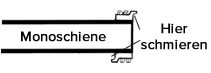 Es kommt zur Reibung zwischen den Berührungsflächen der Monoschiene und dem vorderen Teil des Gerätes. Zerlegen Sie den Indoor Rower in zwei Teile. Tragen Sie eine dünne Schicht Vaseline auf die oberen und unteren Einhängungen des Schnellverschlusses, die sich am vorderen Ende der Monoschiene befinden. Nun können Sie das Gerät wieder zusammensetzen und weiterrudern.